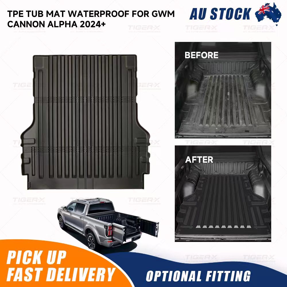 Custom-designed for the GWM CANNON ALPHA 2024-2026, this rear tub mat is made from high-quality TPE (Thermoplastic Elastomer) material. It offers excellent durability, flexibility, and resistance to water, mud, and chemicals. The non-slip surface helps secure your cargo, while the raised edges prevent spills and debris from damaging your tub. Easy to clean and eco-friendly, it’s a perfect upgrade for keeping your tub area protected and looking sharp.