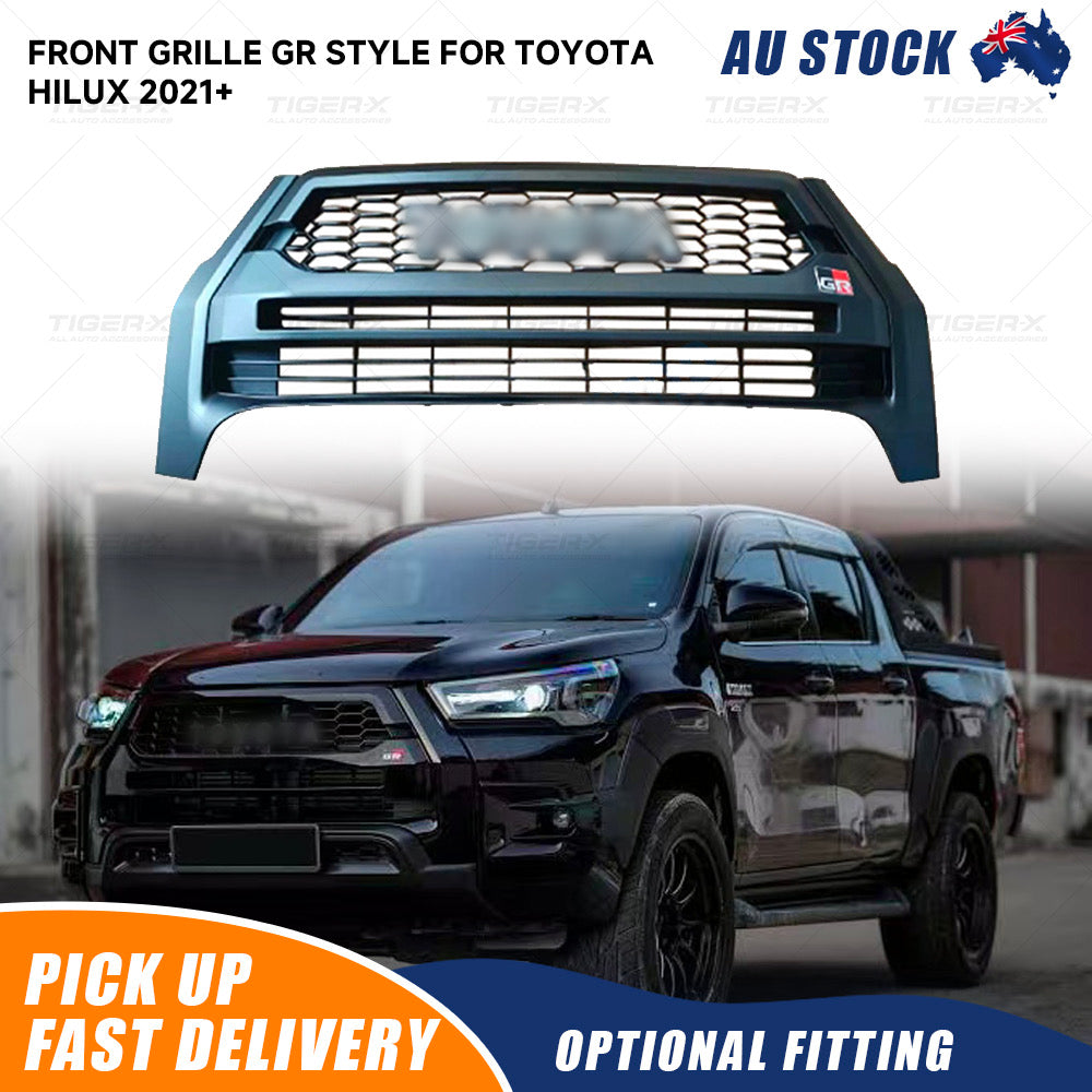 Black Front Grille GR Sport Style For Toyota Hilux Rogue 2021-2024