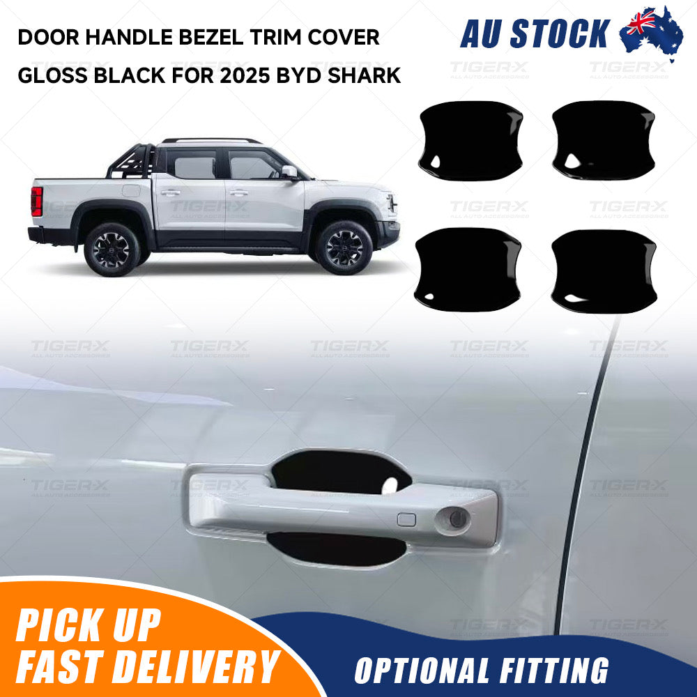 Enhance the look of your 2025 BYD Shark with this stylish Gloss Black Door Handle Bezel Trim Cover. Designed for a perfect fit, these covers add a sleek and sporty appearance to your vehicle while protecting the original handles from scratches and wear.