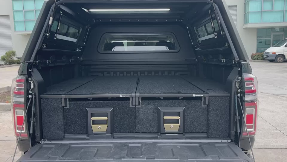 Get the most out of your 4wd UTE with our premium drawer system! Designed and engineered in Australia, this system offers superior durability and functionality. With a 1.5mm galvanized steel frame and 1.2mm galvanized steel drawers, you can trust it to withstand the toughest conditions. Plus, with fixed or sliding top options, you can choose the configuration that suits your needs. Whether you're a tradie or an adventurer, this drawer system is the perfect addition to your ute.