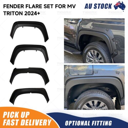 Upgrade your Mitsubishi TRITON MV 2024+ with a set of 6 black fender flares, a perfect blend of functionality and style. These fender flares are crafted from high-strength ABS material, ensuring durability and resistance to scratches. Designed for a sleek fit, they come with a primed finish that offers a smooth look while providing protection for your vehicle's bodywork. Note: Heating the tape will activate the adhesive for a strong bond.